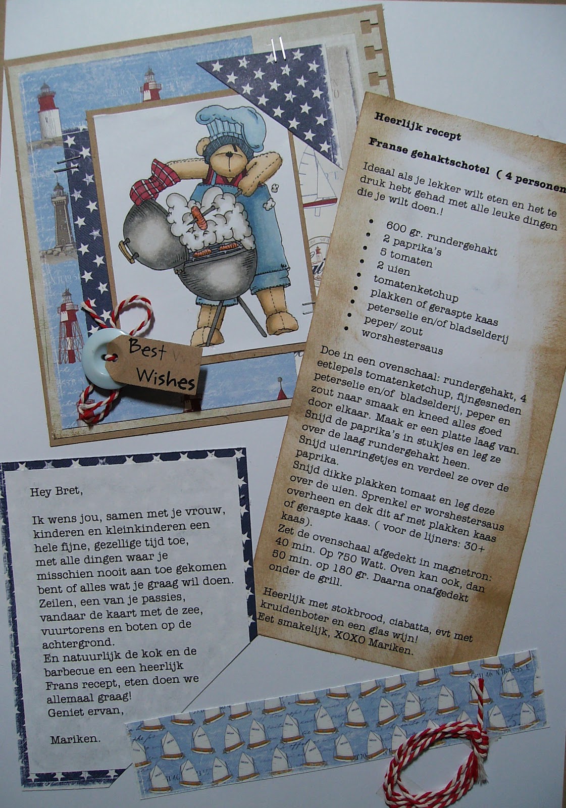 Het eerste A4-tje is voor Bret, ik weet dat hij erg van water en zeilen houdt. En barbecue-en en eten is een gok, maar ik denk dat hij dat graag doet...