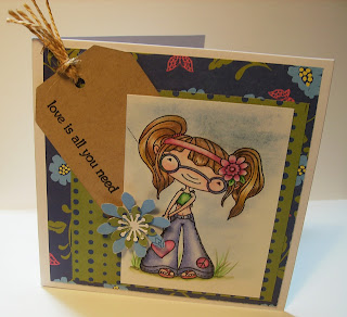 Een nieuw stempeltje van MFT (Doodle Garden), ze zijn zo leuk. Het jurkje is gepaperpieced, de rest is gekleurd met Derwentpotloden en Faber Castells.